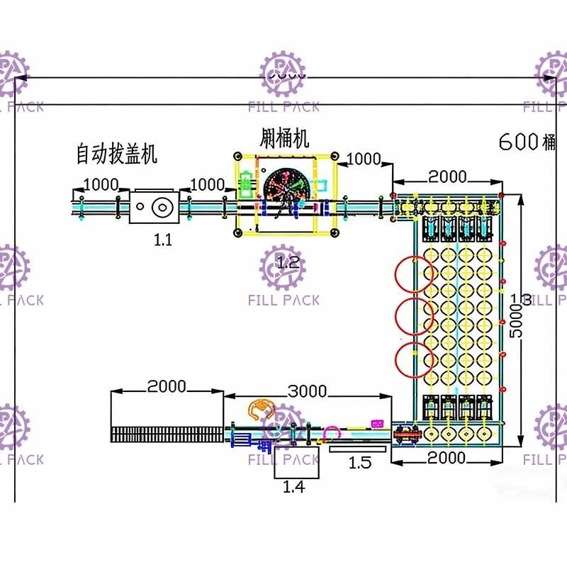 Πλήρως αυτόματη πλήρης 600BPH 3-5 γαλόνια βαρέλι γεμίζει γραμμή παραγωγής |