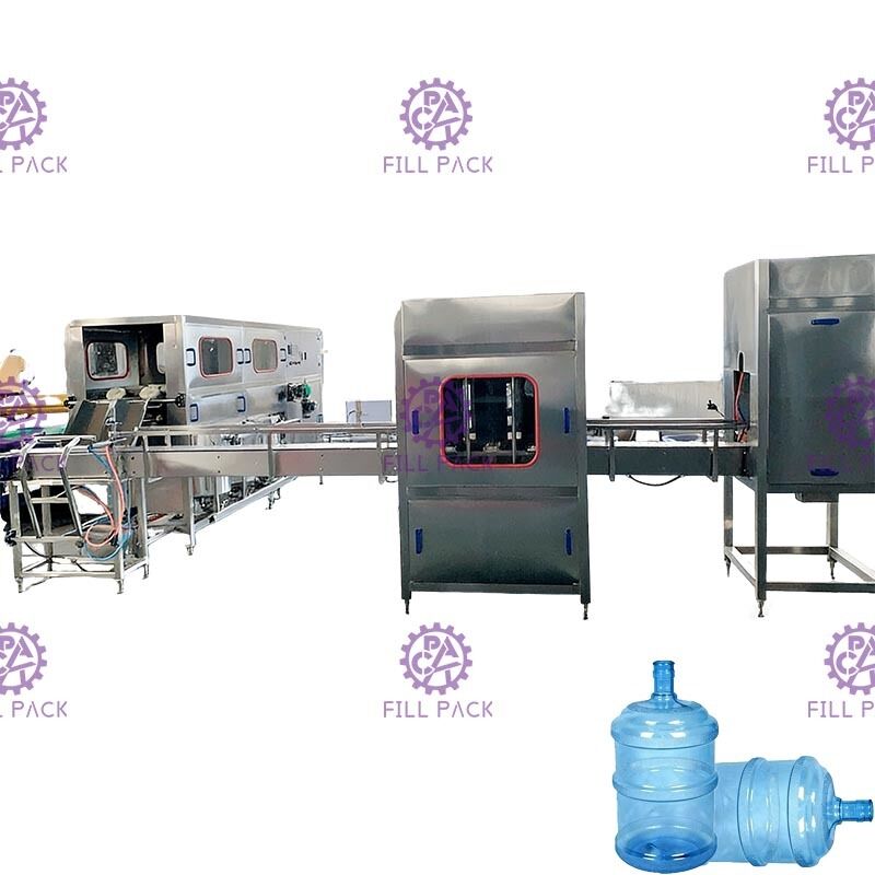 Η μονάδα εμφιάλωσης νερού γαλονιού περιλαμβάνει Ημιαυτόματο de-capper και πλυντήριο, Monoblock rinser-filler-capper,Μεταφορικό ιμάντα, Σήραγγα συρρίκνωσης ετικετών, Φως ελέγχου, Μηχανή κωδικοποίησης με στερεό μελάνι